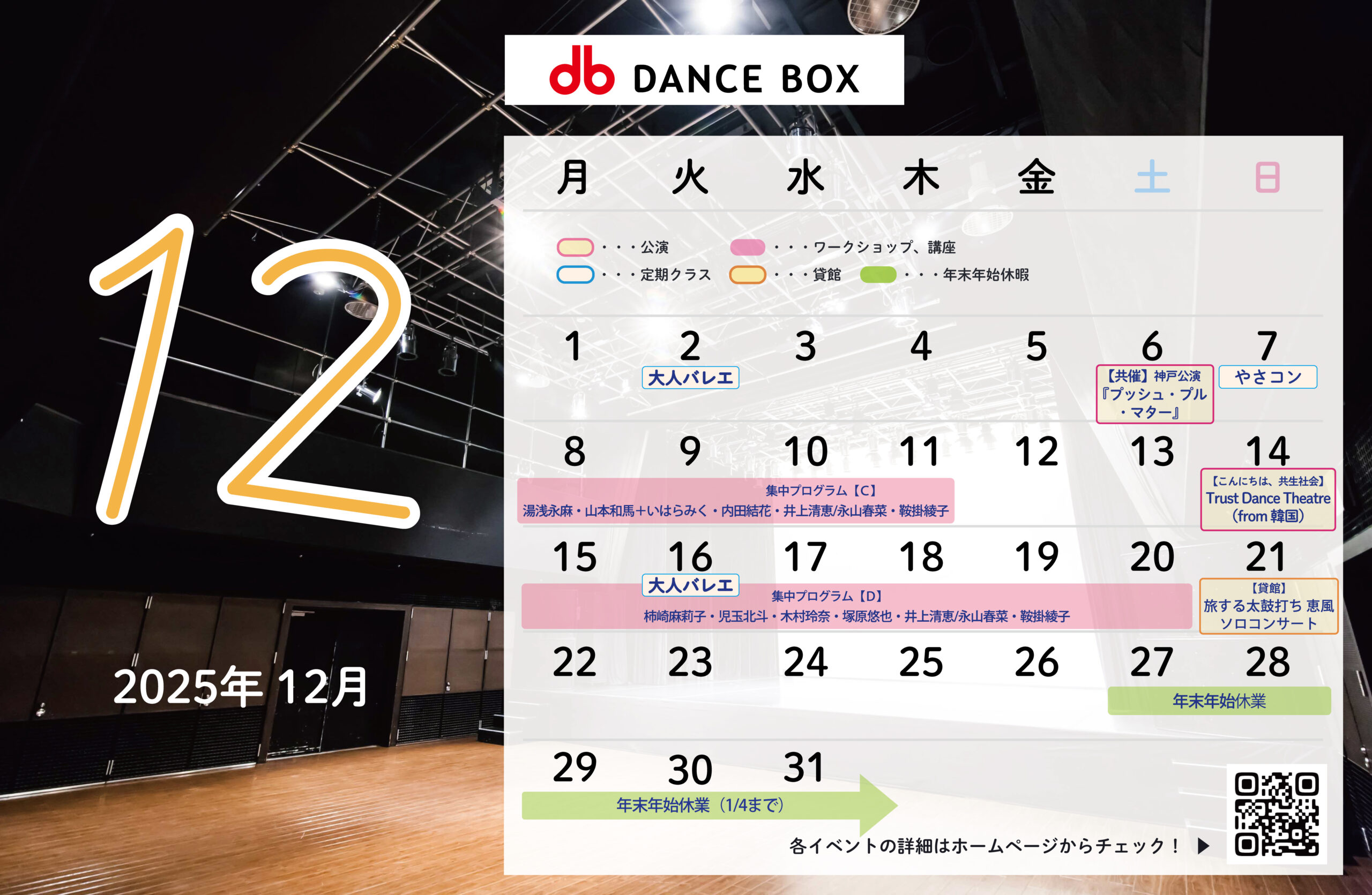 NPO法人DANCE BOXより2025年12月のスケジュールをお知らせします。