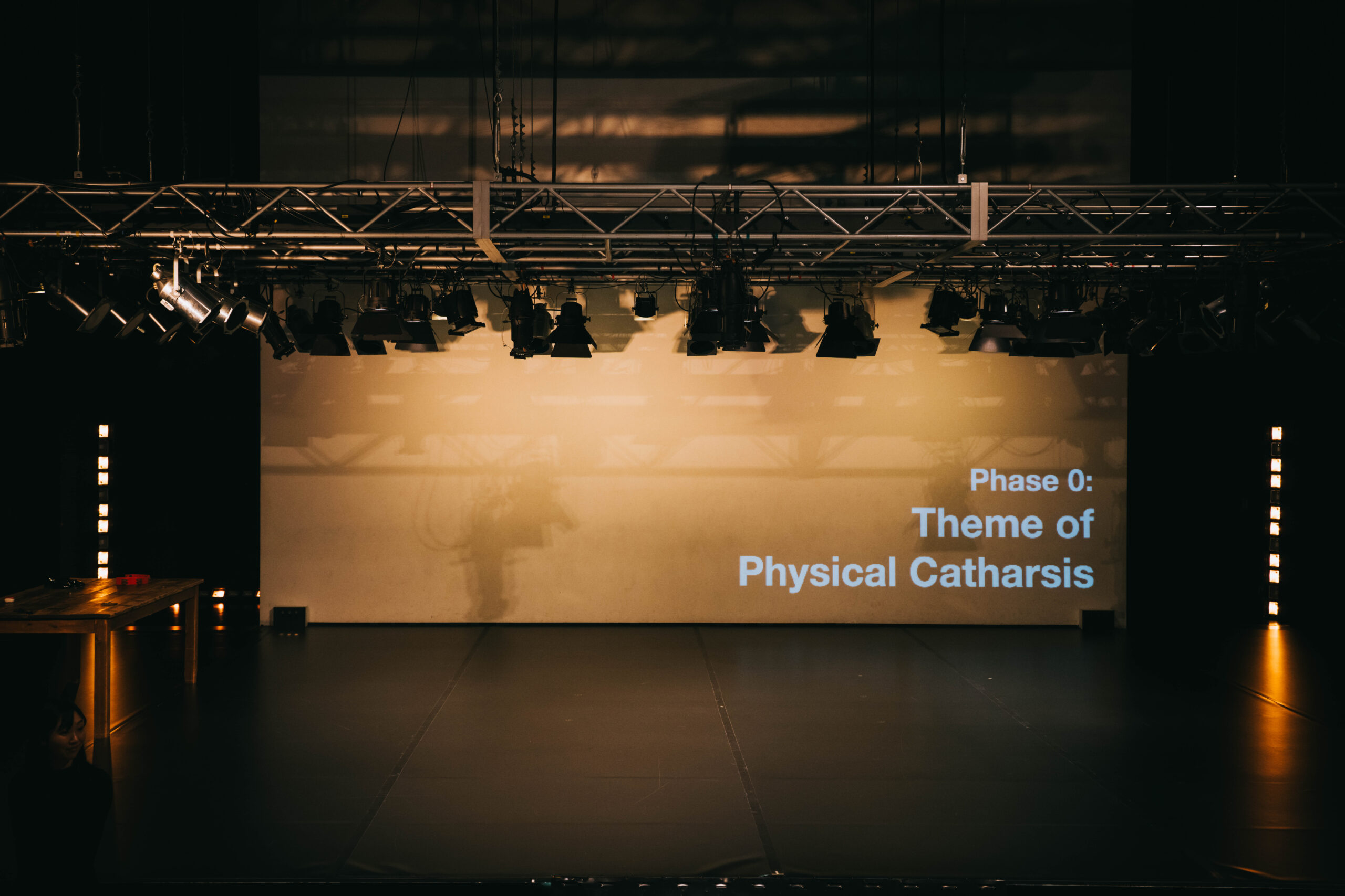 それと似た話のようで(実はちっとも関係ない話かもしれない)、ある作品を見る前にどれだけ事前情報を入れるかにも流儀があって、自分の場合はあまり入れない派。けど、今回はこのレビューを事前に引き受けていたことから、びびる気持ちもあってスペースノットブランクの事前インタビュー記事に目を通した。それが開演1時間前。読みはじめてすぐに、間違ったかなと思う。なんとなく想像していた誠実さがほとばしっていて、しかもかなり長めの文量。絶対に影響を受けてしまいそう。それでも事前に知れてよかったのは、第7番というナンバリングでも7作目の上演というわけではないこと。音楽には藤本由紀夫のサウンド・プロジェクトNORMAL BRAINのアルバムを使うこと。そして、フィジカル・カタルシスという方法論の詳細を理解することを放棄してもよさそうなこと。スペースノットブランクのふたりには明確な方法論があるらしいことを知れただけで十分だった。アーティストが作品をどうやって創作しているのか。そもそもダンス作品では謎めいた印象だけど、自分の性格としては眼の前の瞬間に気持ちが奪われがちで、構造に意識が向かないので、方法論の詳細な理解はいいやと割り切れた。