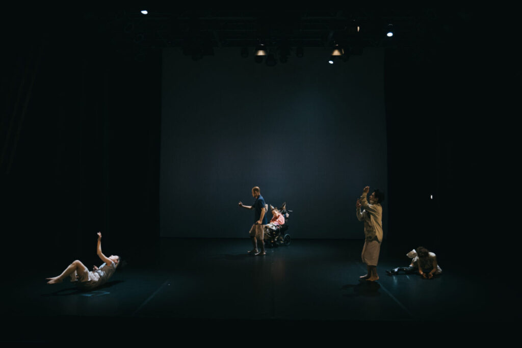 今年度は、両国でのクリエイションの過程を発表するショーイングを、ArtTheater dB KOBEにて9月14〜15日の2日間実施しました。また、ゲストパフォーマンスに、NPO法人DANCE BOXを拠点に活動する社会や暮らしのなかに障害を覚える身体のパフォーマーを含む、コンテンポラリーダンスカンパニー「Mi-Mi-Bi(みみび)」を迎えました。