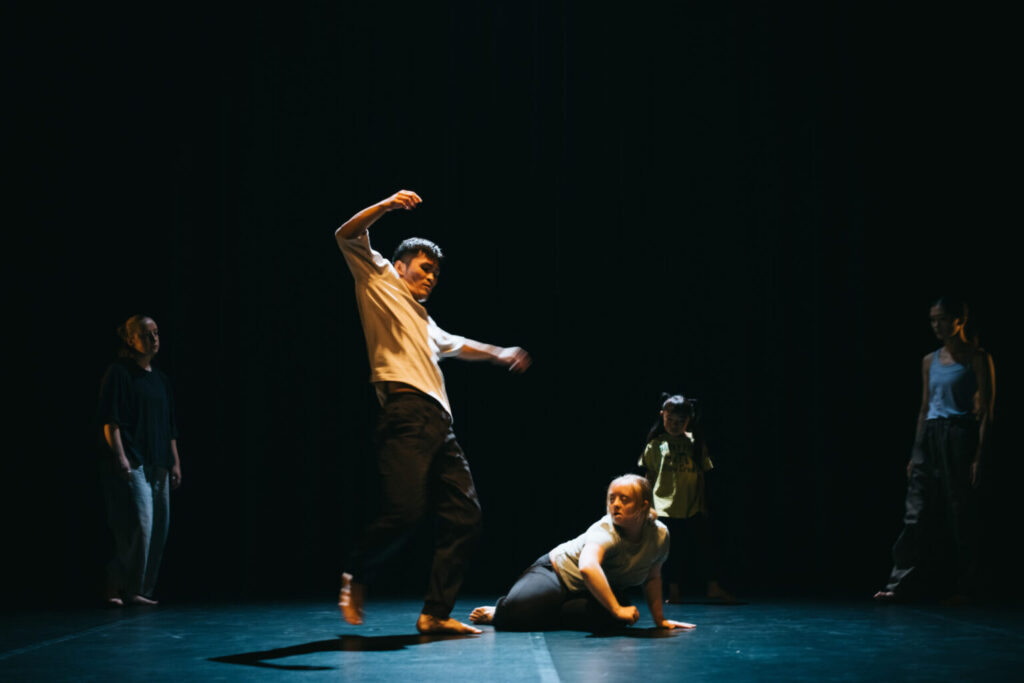 今年度は、両国でのクリエイションの過程を発表するショーイングを、ArtTheater dB KOBEにて9月14〜15日の2日間実施し、ゲストパフォーマンスに、NPO法人DANCE BOXを拠点に活動する社会や暮らしのなかに障害を覚える身体のパフォーマーを含む、コンテンポラリーダンスカンパニー「Mi-Mi-Bi(みみび)」を迎えました。