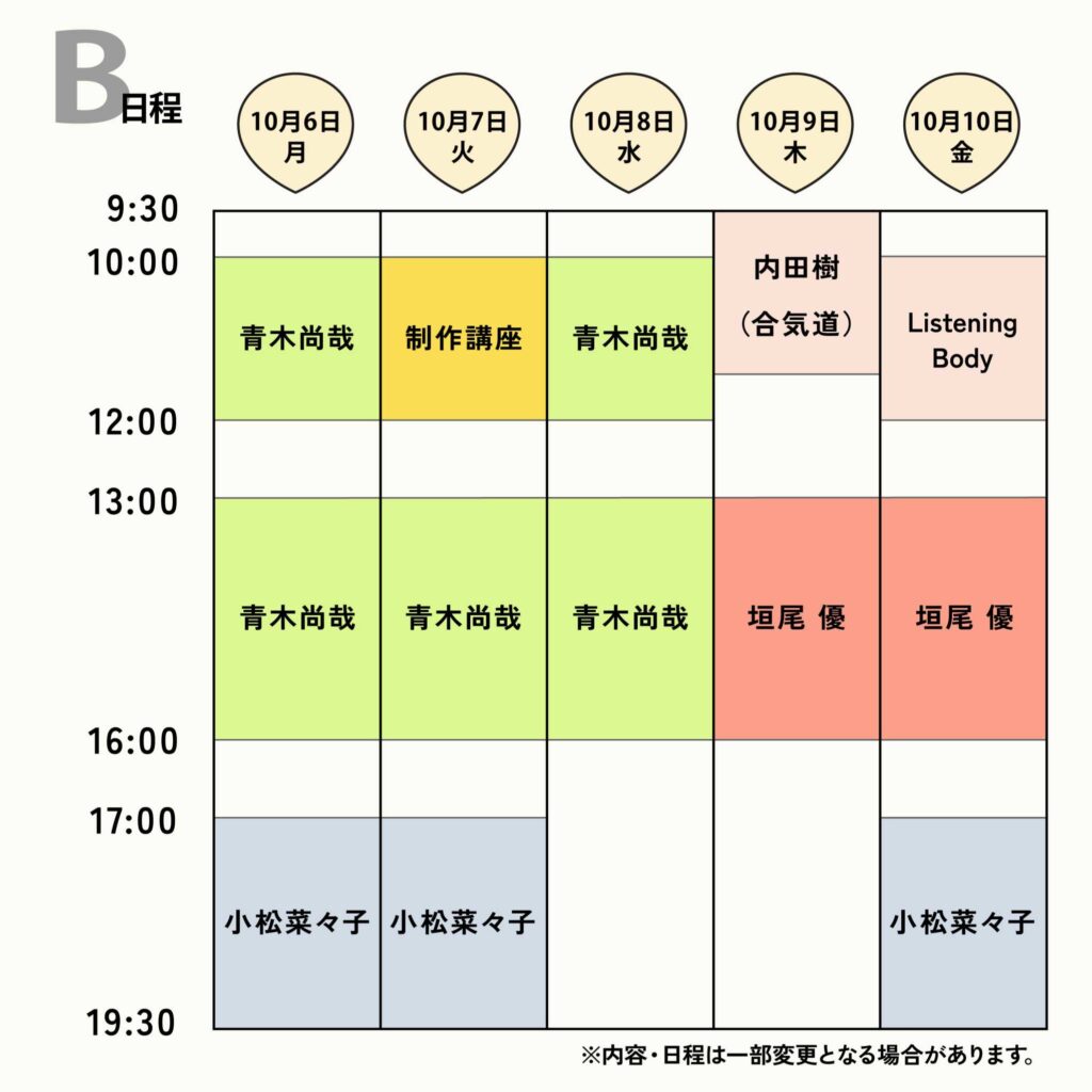 講師/ファシリテーター: 青木尚哉、垣尾優、小松菜々子、内田樹、鞍掛綾子