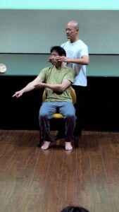 講座の最初に、何かアクションを起こすときは、力を完全に抜いた状態から始めたほうがより自由に動けるという説明を受けました。
