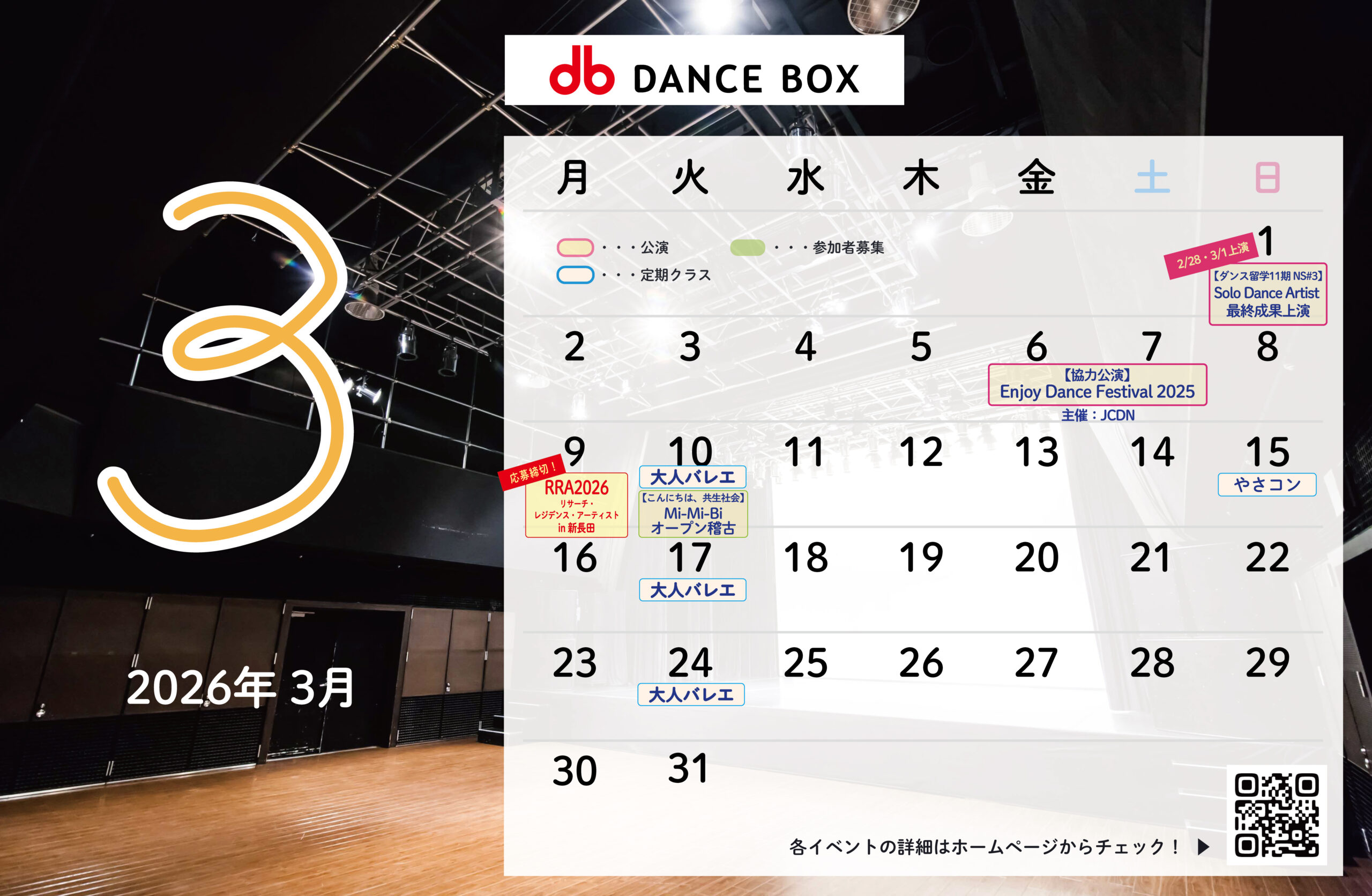 NPO法人DANCE BOXより2026年3月のスケジュールをお知らせします。